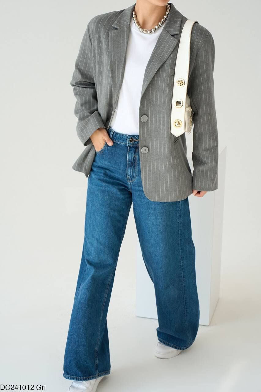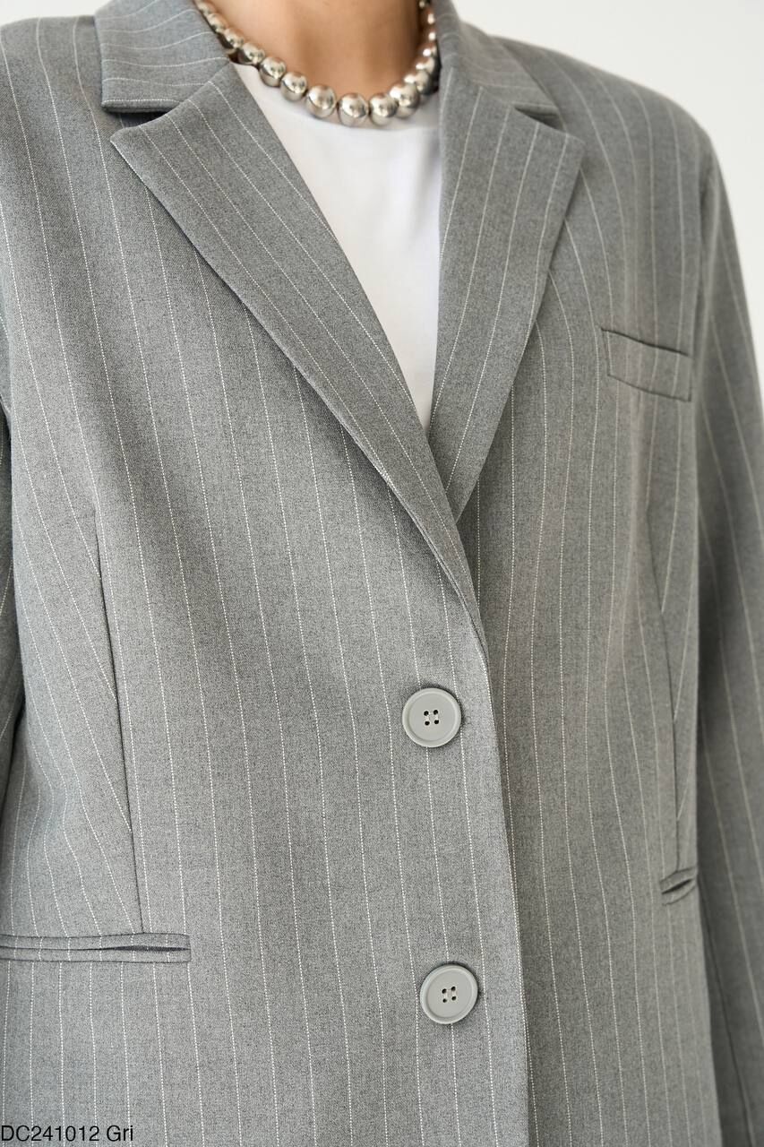 Bu oversize blazer ceket, hem şık hem de rahat bir görünüm sunar. İster günlük kullanım için, ister özel bir davet için tercih edebilirsiniz. Çizgili deseni sayesinde tarzınıza modern bir dokunuş katacak olan bu blazer ceket, hem şıklığı hem de konforu bir arada sunuyor. Gardırobunuzun vazgeçilmez parçası olmaya aday!