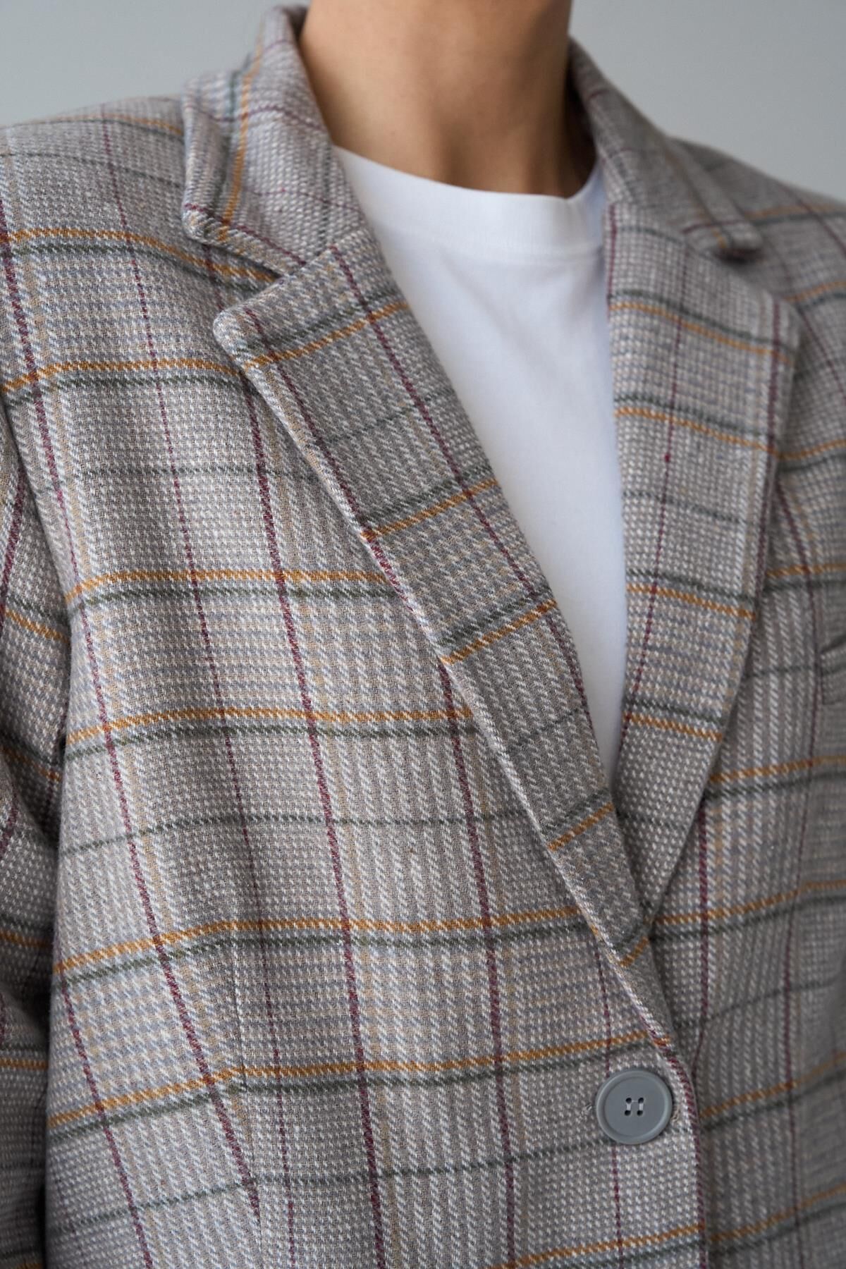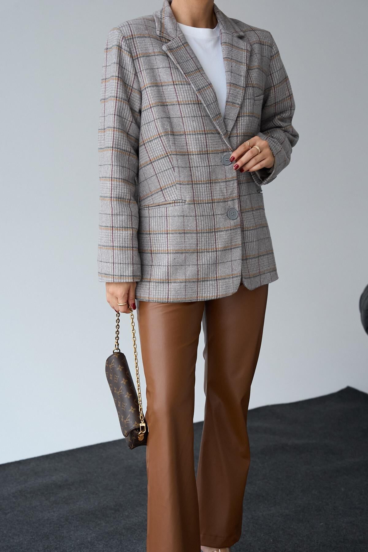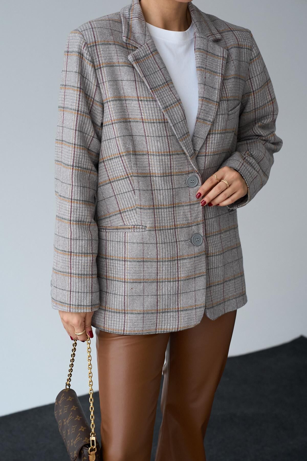 Bu ekose blazer ceket, oversize kesimiyle günlük şıklıkta rahatlık sunar. Klasik tarzı modern bir dokunuşla birleştiren bu ceket, istediğiniz her kombinle mükemmel uyum sağlar. Stilinize hareket kazandırmak ve öne çıkmak için ideal bir seçimdir.