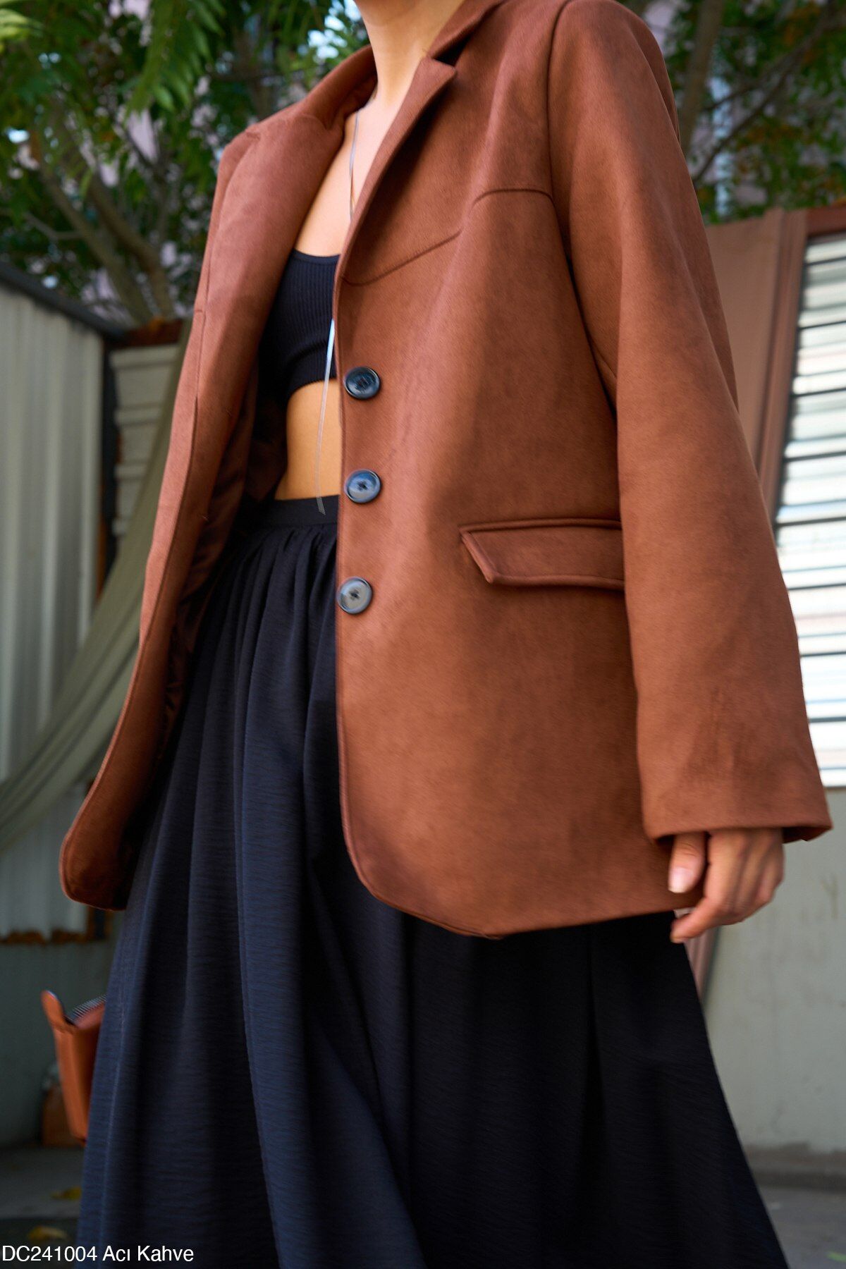 Bu muhteşem süet nubuk blazer ceket, şıklık ve rahatlık arayanlar için ideal bir seçenektir. Oversize tasarımı, modern tarzınızı yansıtırken, düğmeli detayları da şıklığınızı tamamlar. Klasik ve zamansız bir parça olan bu ceketi her mevsim ve her kombinle rahatlıkla kullanabilirsiniz.